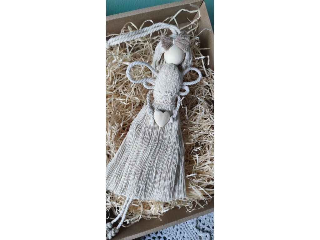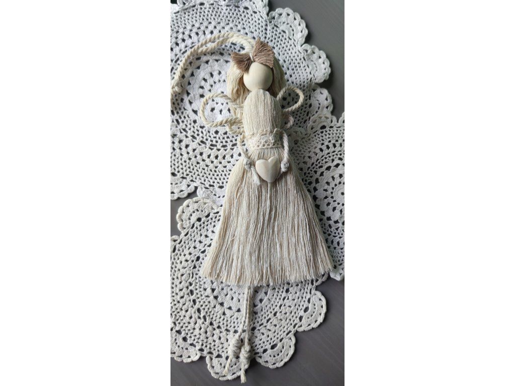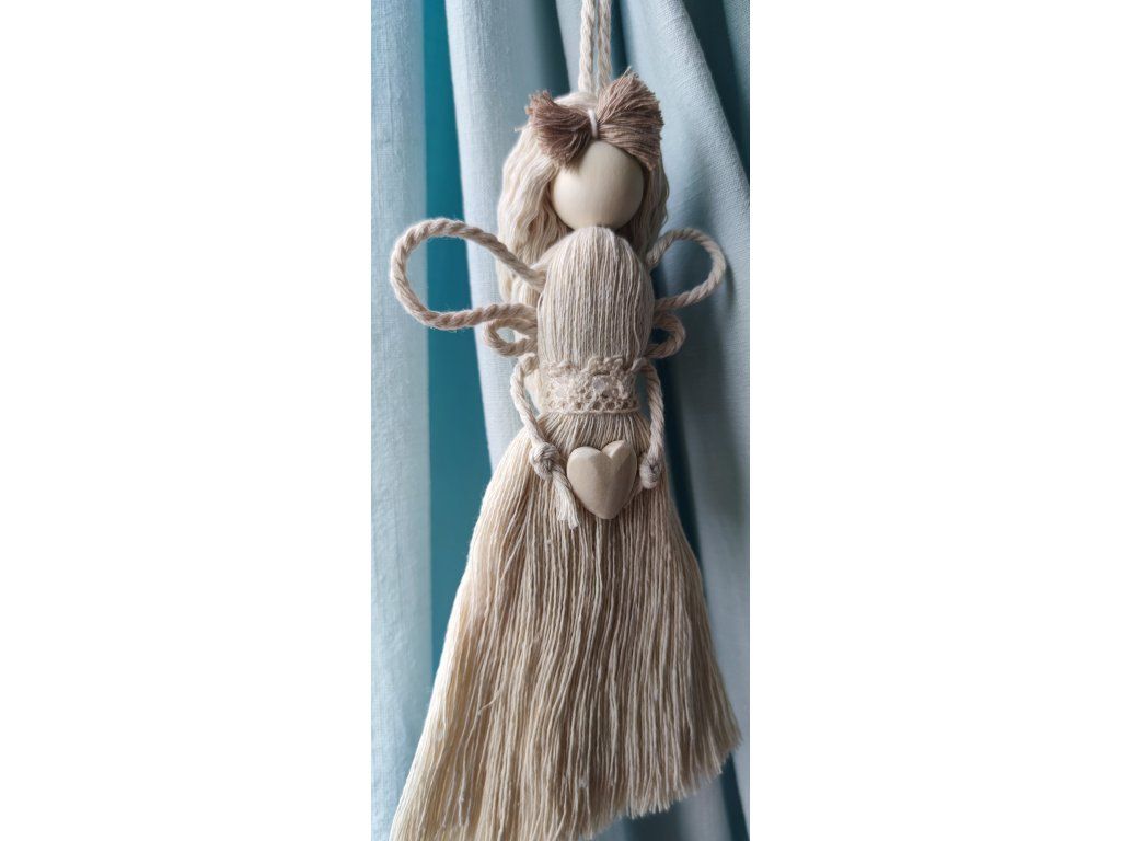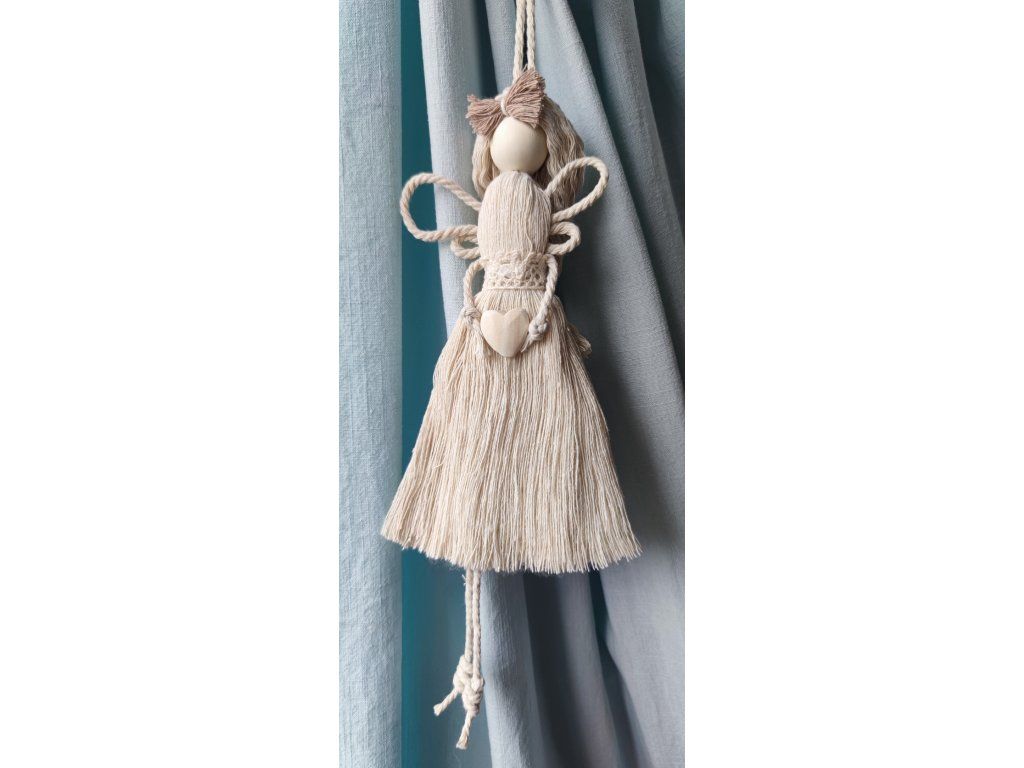 Ručně vyráběná macramé dekorace z přírodních materiálů, tvořená s důrazem na detail. Působí něžně a harmonicky – jako tichý symbol lásky a pohody.