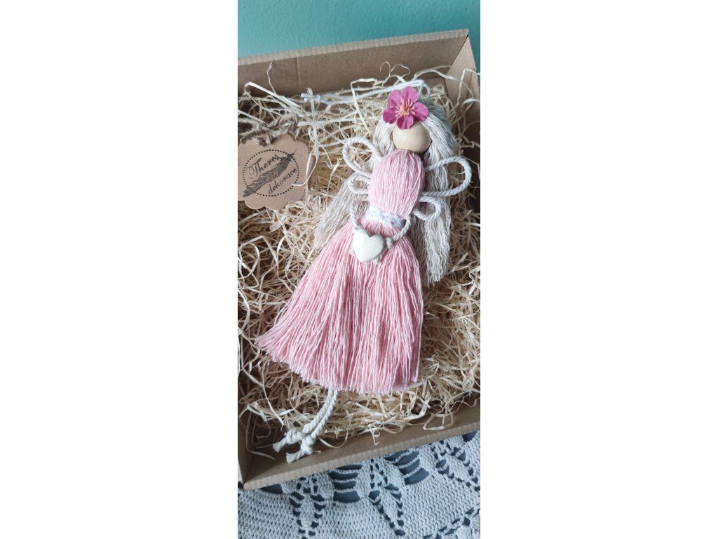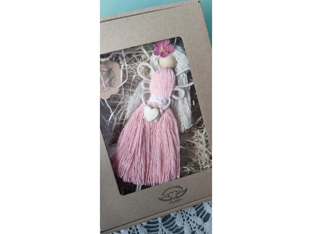 Andělka Růženka Ručně vyráběný, v dárkovém balení, přírodní dekorace do interiéru