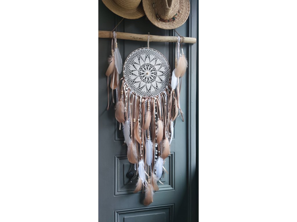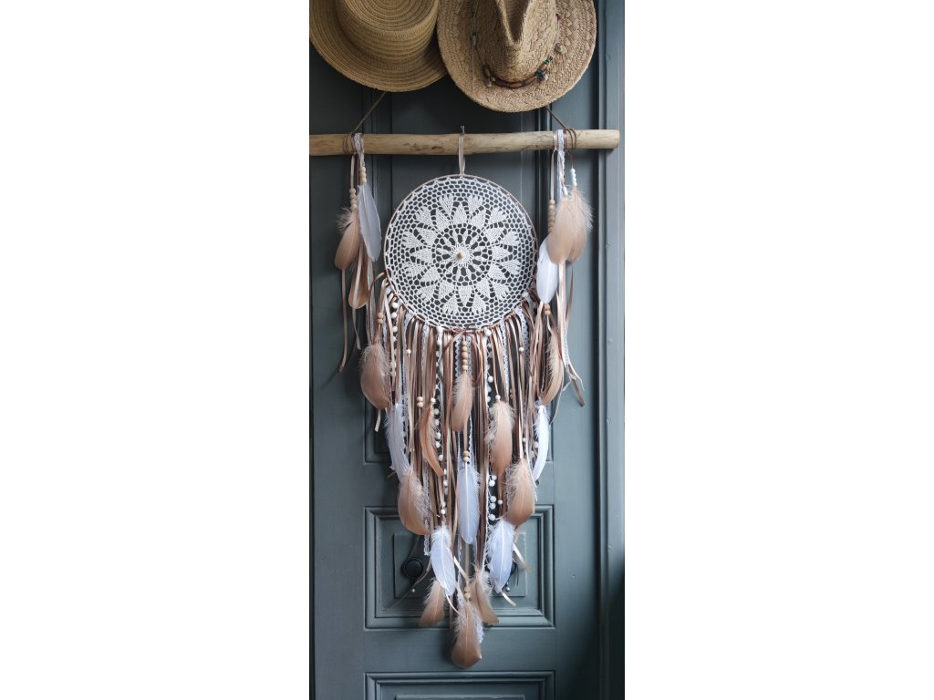 Tato velká boho dekorace s lapačem snů je vytvořená pro milovníky přírodních tónů a jemného, uvolněného stylu.